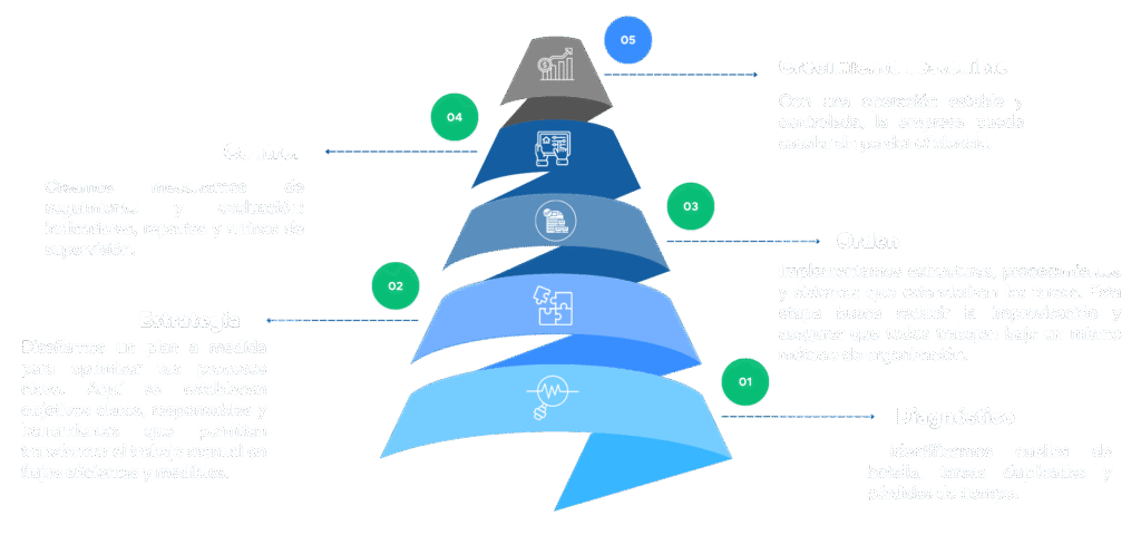 En el día a día operativo, muchas empresas avanzan sin una dirección clara. Trabajar sin estrategia significa reaccionar constantemente a los problemas, depender del esfuerzo individual y perder tiempo en tareas que no generan valor. El resultado: caos, retrabajo y estancamiento